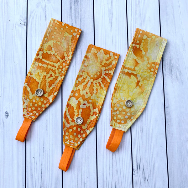 Handmade Buttoned Headbands - Batik Orange/Yellow Sunflowers