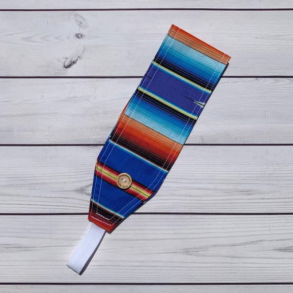 Handmade Buttoned Headbands - Blue Serape