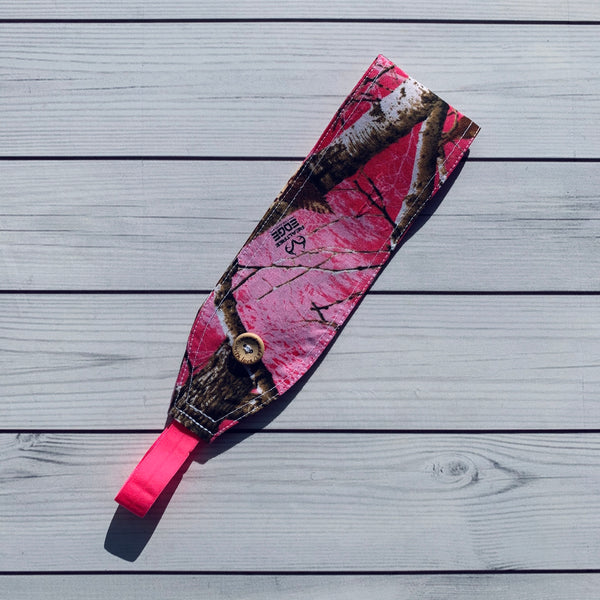 Our handmade buttoned headband is intended for use with face masks to help alleviate ear pain from constantly wearing a mask. It is ideal for our nurses, health care providers and those whom need to be in public wearing a face mask for extended periods of time. The elastic from a mask wraps around the button on either side of the headband to keep it off your ears. Each headband is made from two layers of cotton with in between is a layer of interfacing. The elastic across a gap in the back to help with a more comfortable fit. Each headband is washable and reusable.