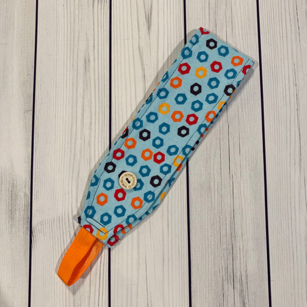 Our handmade buttoned headband is intended for use with face masks to help alleviate ear pain from constantly wearing a mask. It is ideal for our nurses, health care providers and those whom need to be in public wearing a face mask for extended periods of time. The elastic from a mask wraps around the button on either side of the headband to keep it off your ears. Each headband is made from two layers of cotton with in between is a layer of interfacing. The elastic across a gap in the back to help with a more comfortable fit. Each headband is washable and reusable.