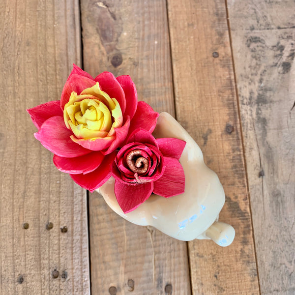 This adorable little elephant with our handmade wood flowers in it is sure to be a "hit" with everyone who loves elephants!