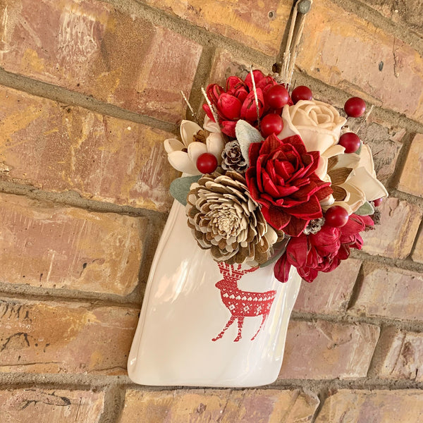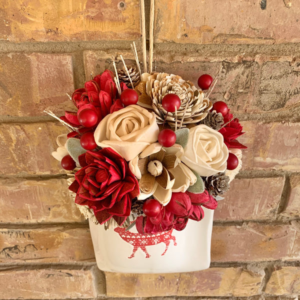 This adorable Christmas ceramic pocket filled with our handmade wood flowers is sure to bring a smile! It would be the perfect gift! Don't forget to add a bottle of our essential oils to your cart to make them smell wonderful!