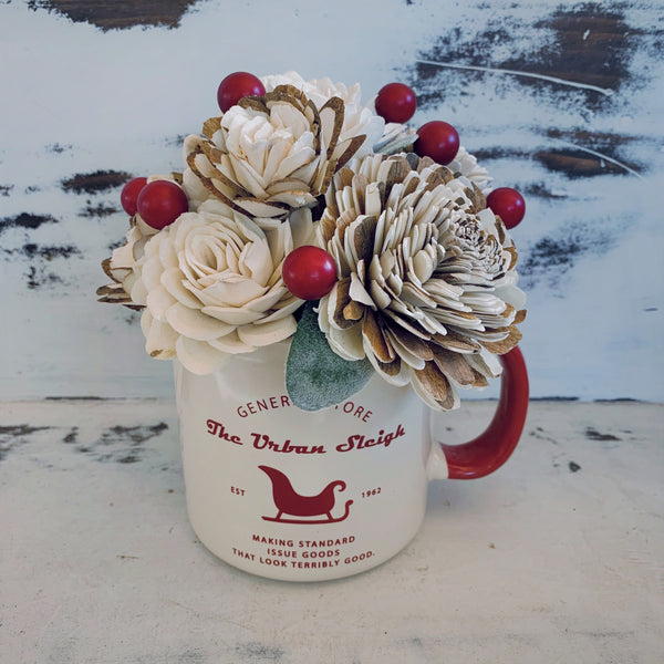 This adorable Christmas mug filled with our handmade wood flowers is sure to bring a smile! It would be the perfect gift! Don't forget to add a bottle of our essential oils to your cart to make them smell wonderful!