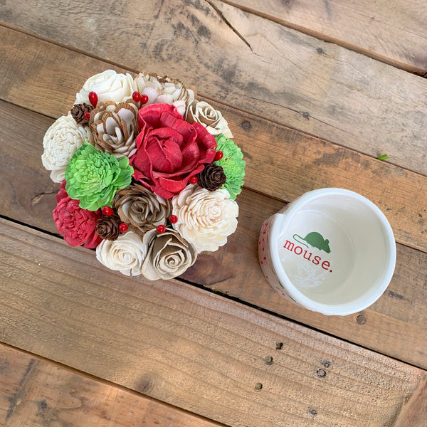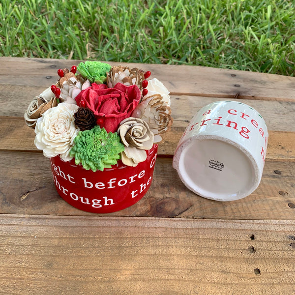 This adorable Mudpie cermamic container set filled with our handmade wood flowers read out the first line of the famous Twas the Night Before Christmas Story!