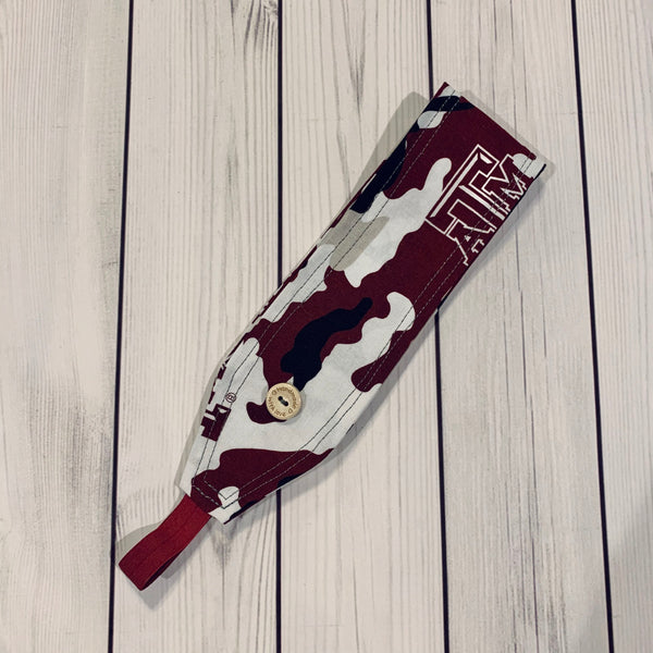 Our handmade buttoned headband is intended for use with face masks to help alleviate ear pain from constantly wearing a mask. It is ideal for our nurses, health care providers and those whom need to be in public wearing a face mask for extended periods of time. The elastic from a mask wraps around the button on either side of the headband to keep it off your ears. Each headband is made from two layers of cotton with in between is a layer of interfacing. The elastic across a gap in the back to help with a more comfortable fit. Each headband is washable and reusable.